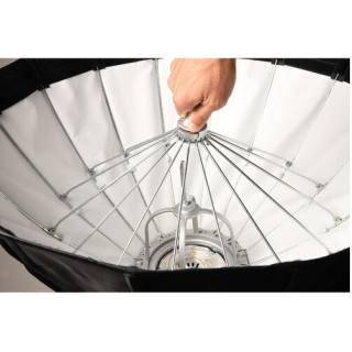 Questo softbox ottagonale fornisce un'illuminazione morbida e di colore neutro grazie al suo interno bianco ed è utile per fotografia di ritratti, bellezza e moda.
