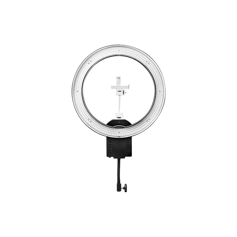 Il Ring Light LED Halo 19 Daylight 19" con diffusore in tessuto e supporto per telecamera di NanLite fa parte di una serie di Ring Light LED perfettamente adatti per l'illuminazione beauty, il vlogging, i selfie, l'acconciatura, il trucco, la fotografia di ritratti e molto altro ancora.
