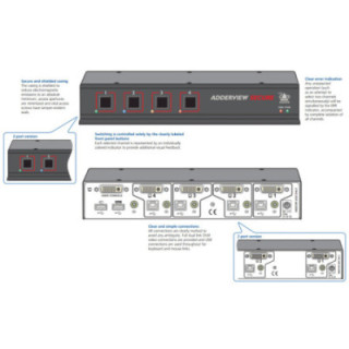 Il Switch KVM digitale sicuro AdderView AVSD1002 consente di condividere un monitor, una tastiera e un mouse, oltre all'audio tra sistemi ad alta e bassa sicurezza, a volte chiamati reti rosse e nere, ed è accuratamente progettato per impedire il flusso di informazioni tra i computer o verso il mondo esterno tramite intercettazione delle emissioni. Il design sicuro di AdderView previene la perdita di dati sensibili tra le porte, la perdita di dati sensibili verso il mondo esterno e l'archiviazione di dati sensibili nel dispositivo. Inoltre, lo switch combatte attivamente una gamma di potenziali "minacce" di perdita.