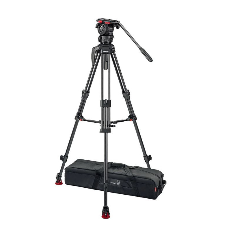 Testa fluida FSB 4 (0307) + treppiede 75/2 CF (S2171-0001) + spreader a livello intermedio flowtech75 (S2054-1001) + piedi in gomma 75 (SSP12P0150) + maniglia di trasporto (S2051-1063) + borsa imbottita (9116)