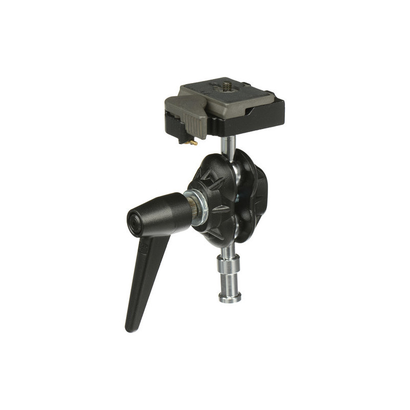 La Manfrotto 155RC Testa a doppia sfera con Piattaforma per Fotocamera/Sgancio Rapido è ideale per fissare e posizionare una piccola fotocamera su un Super Clamp.