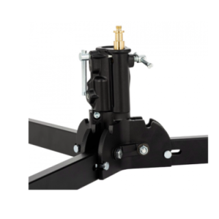 Una base per stativo pieghevole senza ruote. Dispone di una prolunga livellante per l'uso su terreni irregolari. Accetta perni Junior o prolunghe per stativo con diametro di 1-1/8". Altezza 8,3 pollici (21 cm), ingombro 29,8 pollici (0,75 m). Supporta fino a 88 lbs (40 kg)