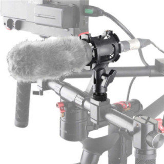 The SmallRig 1859 Universal Microphone Shockmount supports shotgun and other cylindrical microphones with four-point suspension. It includes a shoe mount for mounting onto a camera and a 3/8"-16 thread for attaching to a boompole or handgrip.
