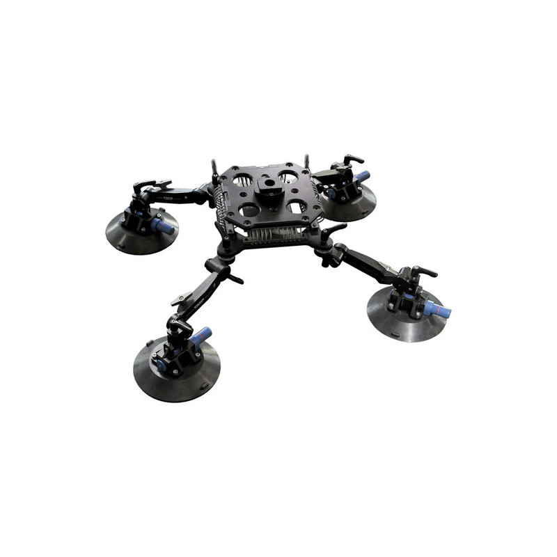 Si tratta di un dispositivo di montaggio a ventosa di alta qualità a quattro punti di precisione. Ogni ventosa può supportare una capacità di 30 kg (66 lbs). Utilizzando bracci di estensione articolati basati sulla rosetta standard Arri, la regolazione delle ventose è facile da effettuare per consentire il montaggio su una varietà di superfici diverse. La testa di supporto ad assorbimento degli urti è stata progettata per essere utilizzata con il gimbal a 3 assi Tiltamax Gravity - tuttavia, la testa può anche essere resa compatibile con la maggior parte dei sistemi gimbal a 3 assi attualmente sul mercato. Una piastra per batteria sulla faccia inferiore della testa di supporto (V-Mount) consente un'alimentazione pratica e compatta di accessori aggiuntivi come i sistemi di tracciamento della messa a fuoco wireless Nucleus Series e i sistemi di trasmissione video HD wireless.