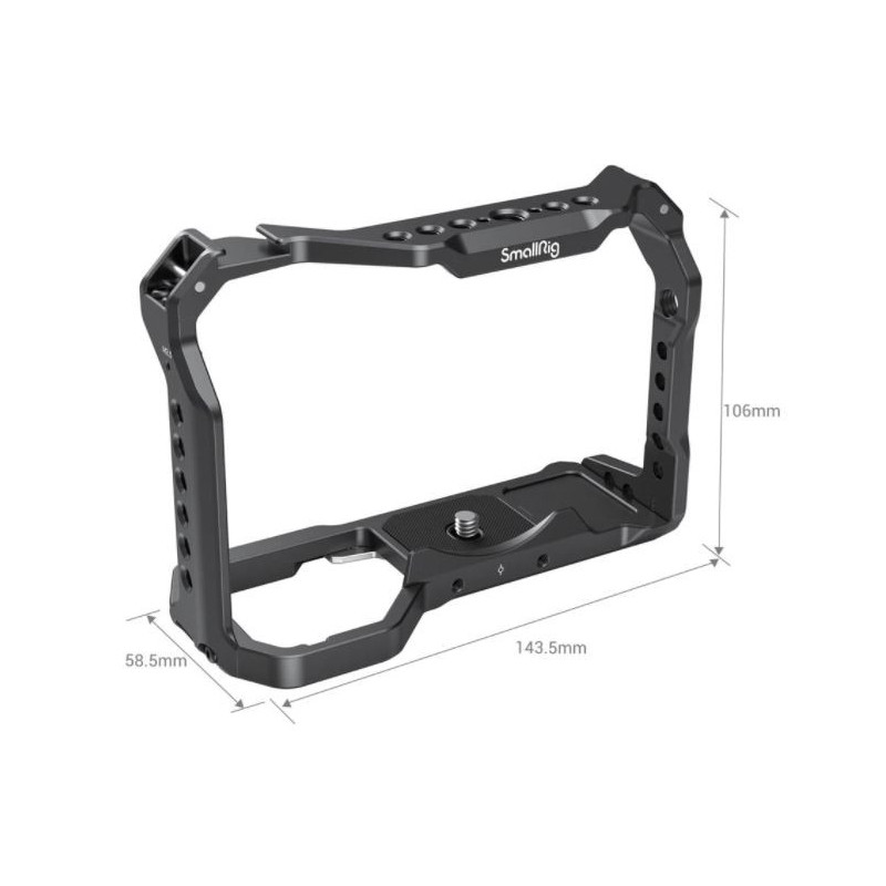 La gabbia leggera SmallRig per Sony A7 III A7R III A9 2918 mantiene l'accesso ai comandi della fotocamera e offre una varietà di opzioni di fissaggio. Oltre a una slitta portaccessori e diversi fori filettati 1/4"-20 e 3/8"-16, questa gabbia in alluminio sagomata dispone di diversi attacchi di tipo ARRI per impedire agli accessori di ruotare quando sono montati sulla gabbia. La gabbia integra anche un design anti-rotazione con una vite M2,5 fissata nel foro per tracolla oltre alla vite di fissaggio 1/4"-20 della fotocamera in modo che la tua fotocamera non possa muoversi nella gabbia. Puoi fissare l'impugnatura superiore SmallRig 1984 o l'impugnatura laterale in legno SmallRig 2093 per le riprese a mano libera, e il morsetto per cavo SmallRig 3104 per proteggere il cavo e la porta HDMI. Gli attacchi di tipo ARRI sulla parte superiore e sul lato ti permettono di fissare l'impugnatura di localizzazione ARRI SmallRig 2165 o il braccio magico con testa a sfera SmallRig 2115. Dispone anche di una guida NATO integrata sul lato sinistro della gabbia. Inoltre, un cacciavite è integrato nella parte inferiore della gabbia per serrare le viti della fotocamera.