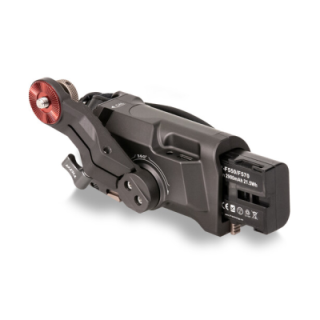 L'impugnatura si fissa sul lato della vostra gabbia Tiltaing utilizzando un adattatore per impugnatura destra dedicato Type IV, V o VI opzionale di vostra scelta. Ciascuno di questi adattatori di montaggio utilizza un tipo di fissaggio diverso, come una rosetta o un binario NATO. L'impugnatura accetta una batteria Sony F570, venduta separatamente. Un cavo USB incluso collega l'impugnatura al vostro motore Nucleus-Nano per alimentarlo con la batteria F570 e consentire il controllo della messa a fuoco tramite la manopola tattile. Ci sono due connessioni sull'impugnatura: un'uscita USB Type-C regolata da 8V dove si collega il cavo USB e un'uscita 12 VDC.