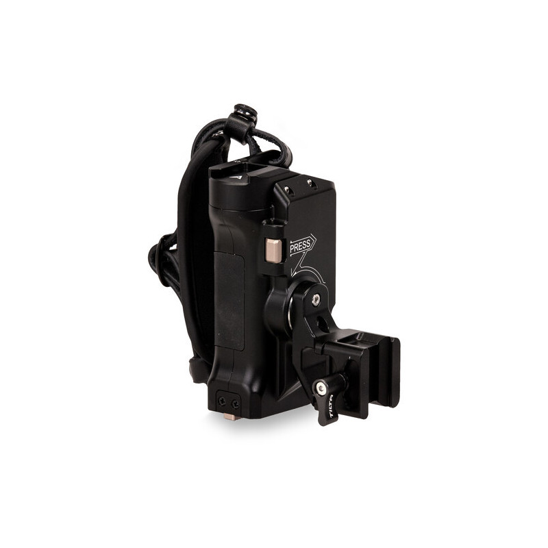 Aggiungi stabilità, opzioni di alimentazione degli accessori e la possibilità di avviare/arrestare la telecamera con questa impugnatura avanzata Tiltaing Type VI con Run/Stop per batteria F570 di Tilta. Progettata con finitura nera per gabbie Tiltaing, dispone di un pulsante per attivare/disattivare la registrazione tramite un cavo opzionale Tilta R/S per telecamere compatibili.