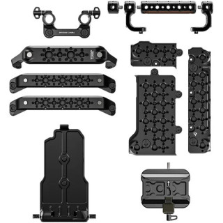 Questo kit comprende il kit standard Ultra Handle 3/8"-16, un sistema di piastra superiore in 3 parti, guide laterali sinistra/destra, una guida posteriore, un morsetto superiore per asta LWS da 15mm e un sistema di piastra di base.