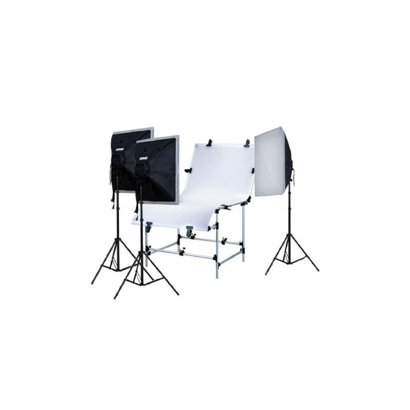 Questo kit contiene un tavolo fotografico ST-0613T e un set di illuminazione diurna LH-ESB5050K3. Una combinazione eccellente per realizzare foto di prodotti professionali. Il set di illuminazione diurna è composto da tre lampade, per ridurre le ombre. Il tavolo fotografico contribuisce a creare uno sfondo bianco uniforme.