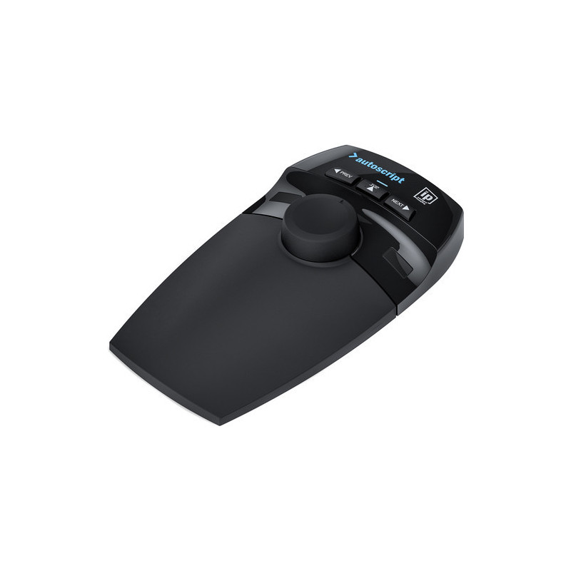 Controllo di scorrimento da scrivania per software prompter WP-IP; Supporto per polso, posizione neutra della mano; pulsanti centrali per uso destrimani e mancini; Due pulsanti funzione programmabili; PoE per semplificare l'integrazione e ridurre il cablaggio