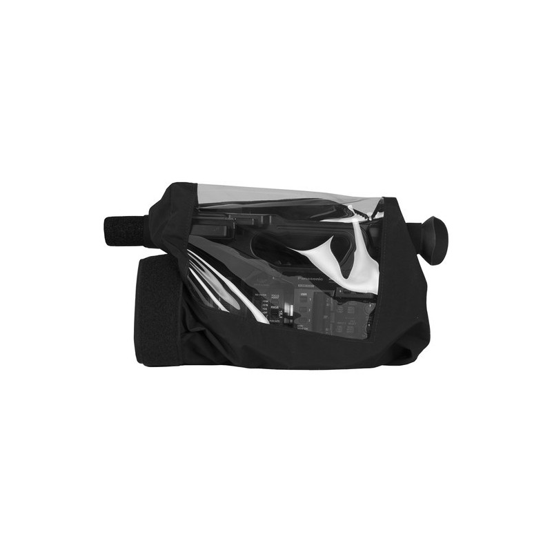 Il QRS-UX90 è su misura per la videocamera Panasonic AG-UX90. Alette sigillate con velcro, finestre in vinile trasparente e aperture con cerniera offrono massima protezione e ottima facilità d'uso. Uno speciale nylon Parapack a triplo strato con finitura in tricot è utilizzato intorno al corpo della videocamera per respingere l'acqua sulla superficie della custodia. La copertura "Quick" è progettata per essere facilmente applicata e rimossa dalla videocamera. Un'apertura lungo il fondo della copertura permette all'operatore di inserire la mano per reggere la videocamera e azionare i controlli.